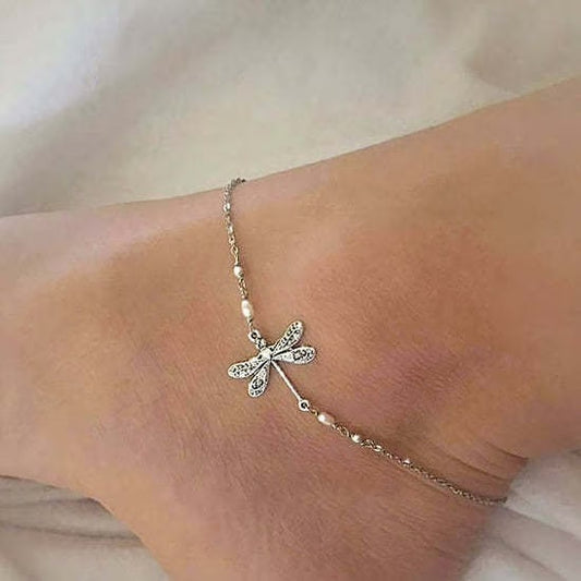 BUY 1 GET 1 FREE TODAY--For Granddaughter--SILVER DRAGONFLY ANKLET WITH PEARL