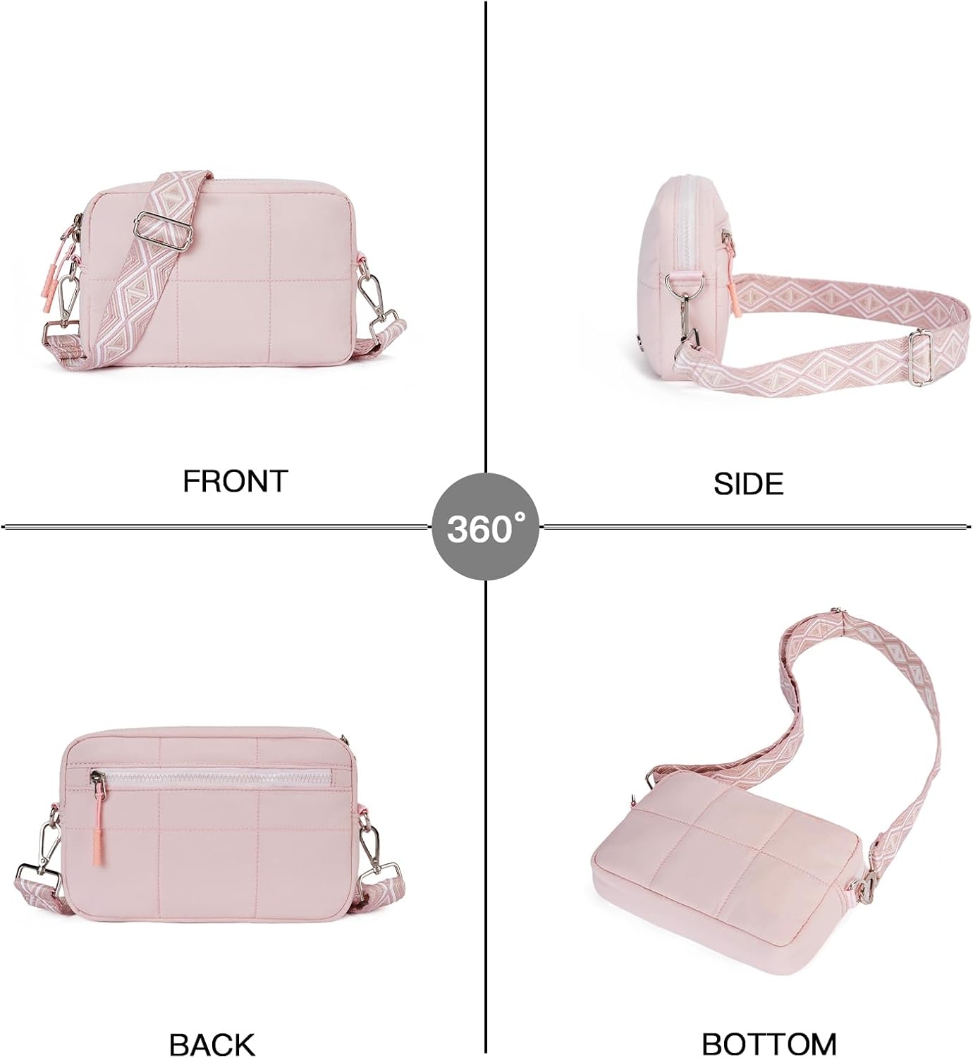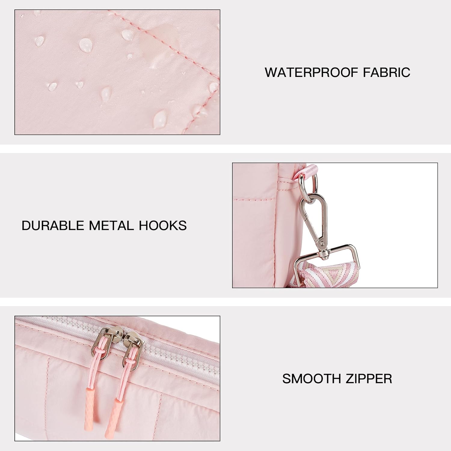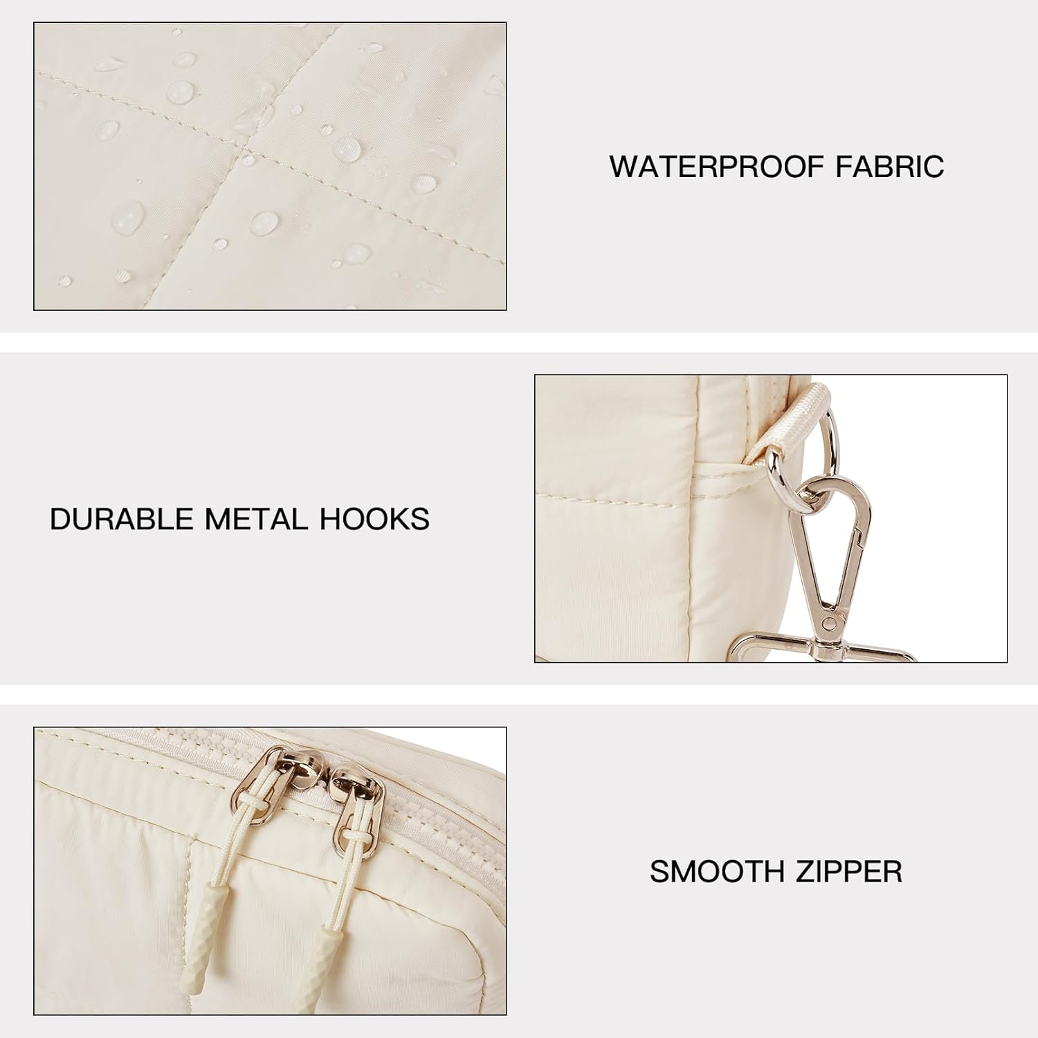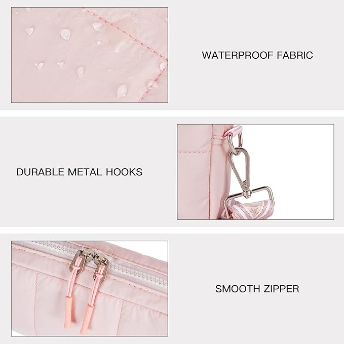 Made with high-quality soft down fabric, it is very light and comfortable to wear. Waterproof materials ensure that your items stay dry. Note that this crossbody bag cannot be washed or machine washed.