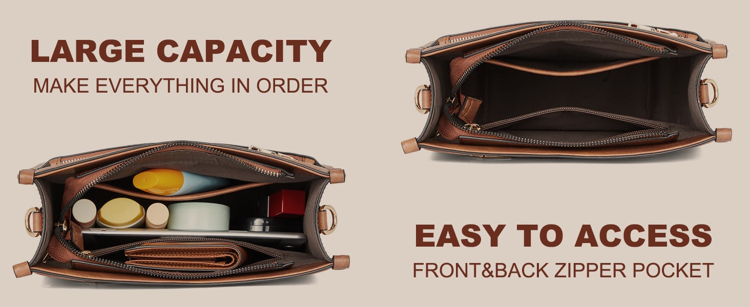 Trendy triple cross body bags has 2 large zipper pocket, 1 inner zipper pocket, 5 card slots and 2 front zipper pocket, large capacity can meet your daily needs. You can store your cell phone, wallet, keys, lipstick, napkins and other daily necessities.